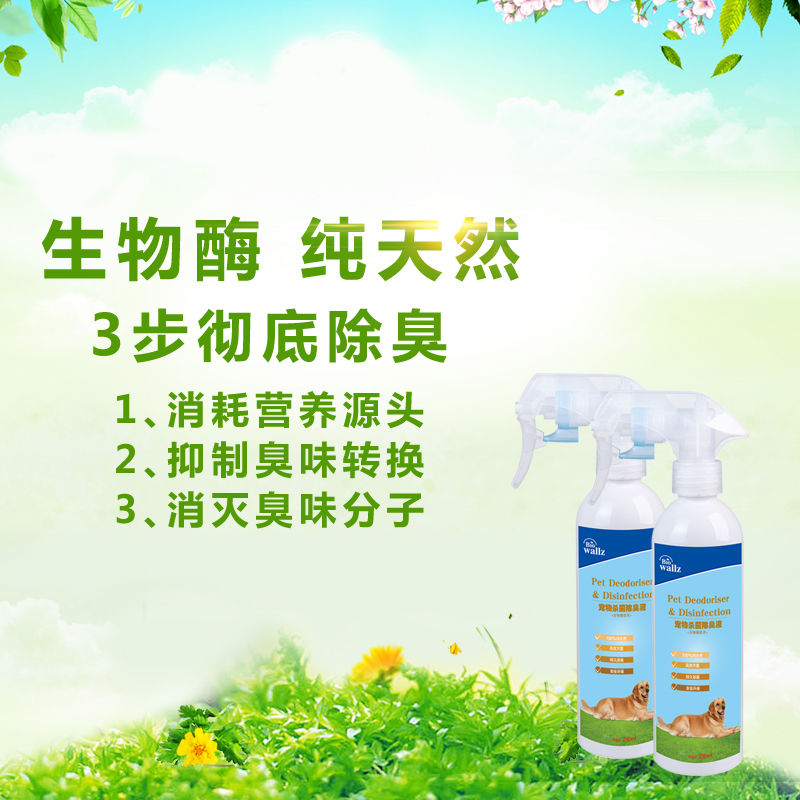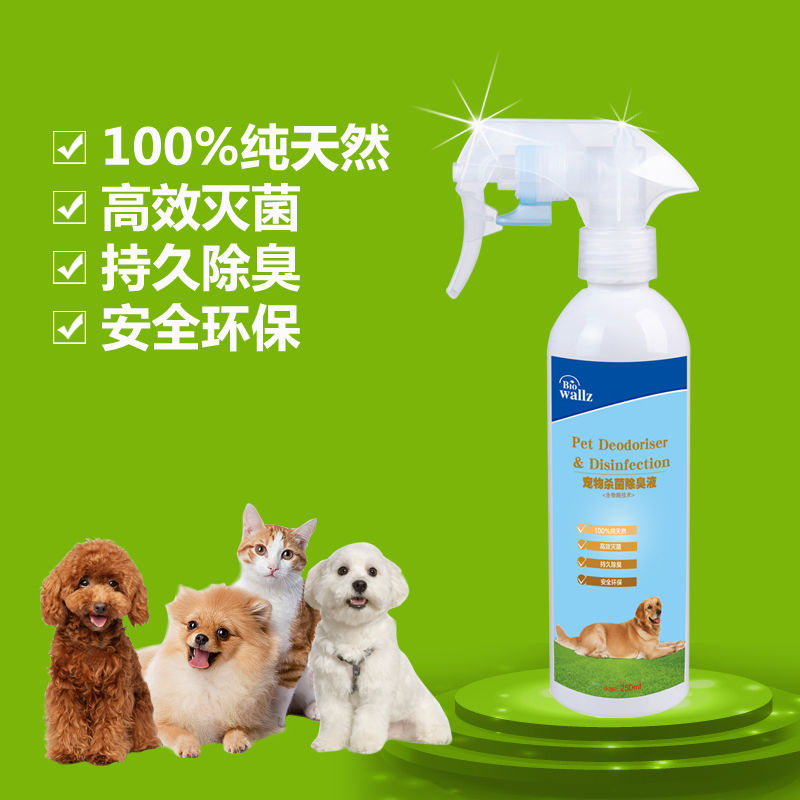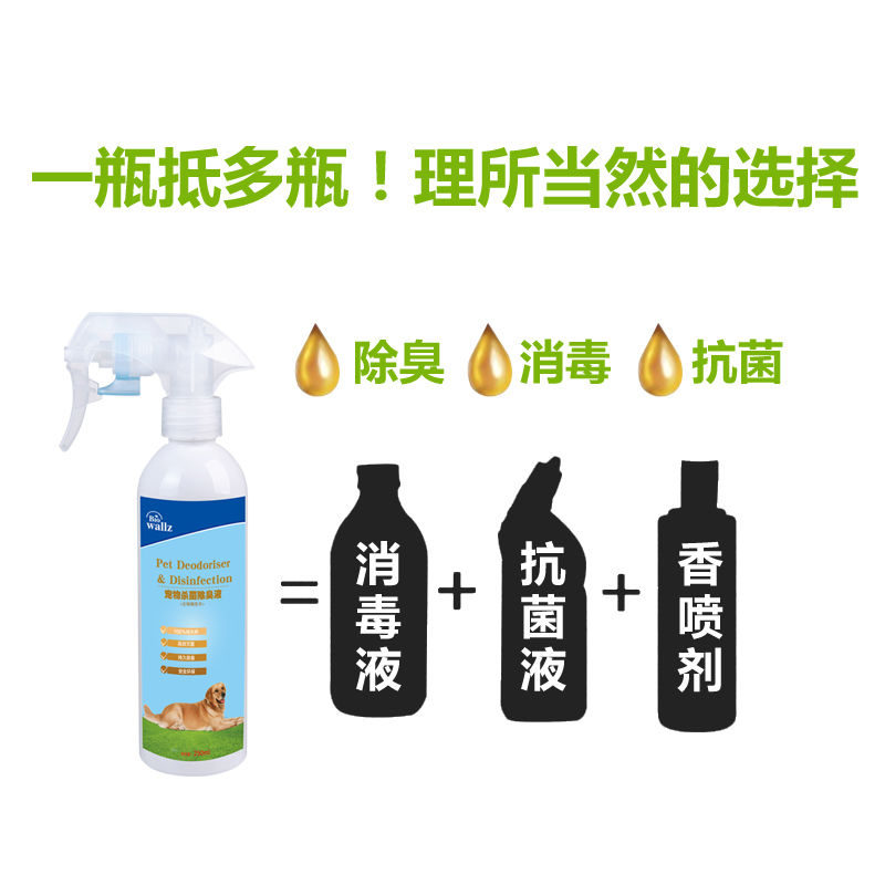 wallz 寵物殺菌除臭液,利用寵物專用生物酶及植物提取液降解尿氨、分解氨氣、硫化氫、甲硫醇、甲硫醚等惡臭物質(zhì),分解成無毒無害的物質(zhì),廣譜殺滅細(xì)菌、病毒、霉菌、真菌等,并抑制腐敗病原微生物生長。本產(chǎn)品含有純天然生物活性物質(zhì),高效殺菌,持久祛味,綠色環(huán)保,人畜無害,提高寵物居室環(huán)境空氣質(zhì)量,是保持您和寵物健康的最佳選擇。